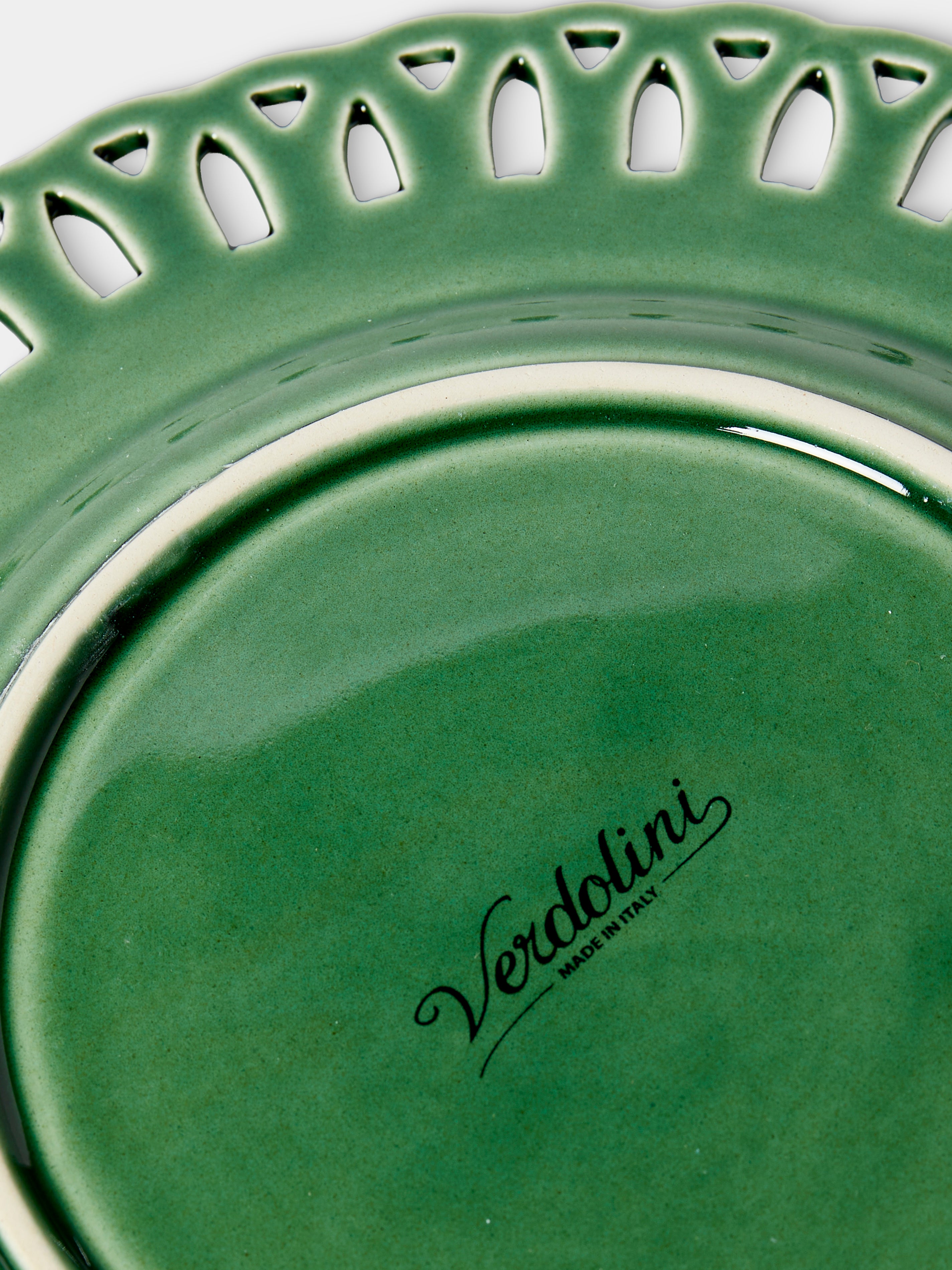 Born in northern Italy in 1964, Verdolini tells its story through ceramics, where earth, glaze and imagination meet. Each piece is shaped and finished by hand, its character revealed through centuries-old techniques and a quiet sense of wonder. Majolica brings to life scenes of foliage and frogs, while Traforato engraving lends lace-like intricacy to borders and edges. A Verdolini specialty lies in reviving archival designs, where historic patterns are reinterpreted with a playful eye and deep respect for the past.