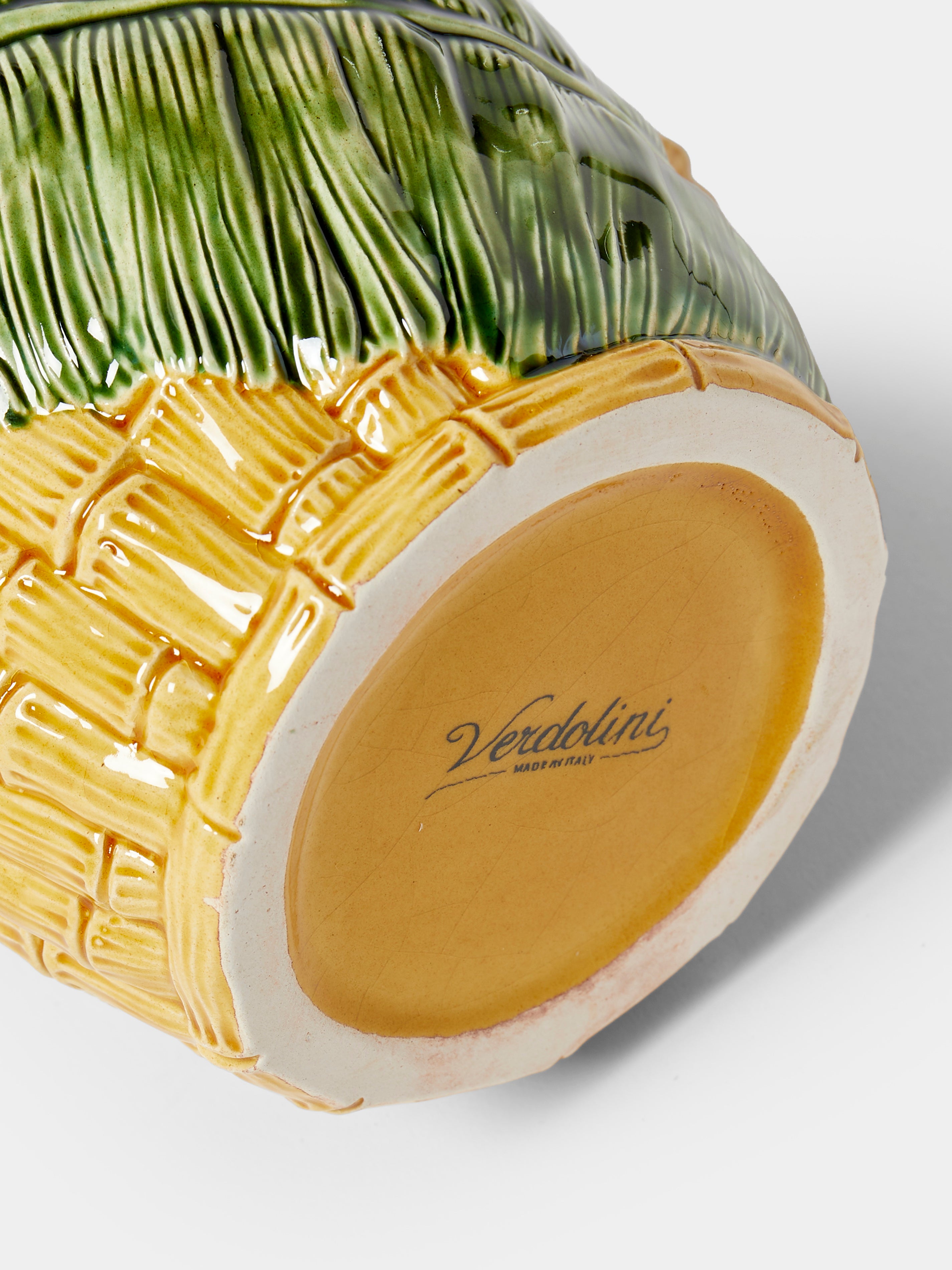 Verdolini Bamboo and Fern Hand-Painted Majolica Ceramic Pitcher