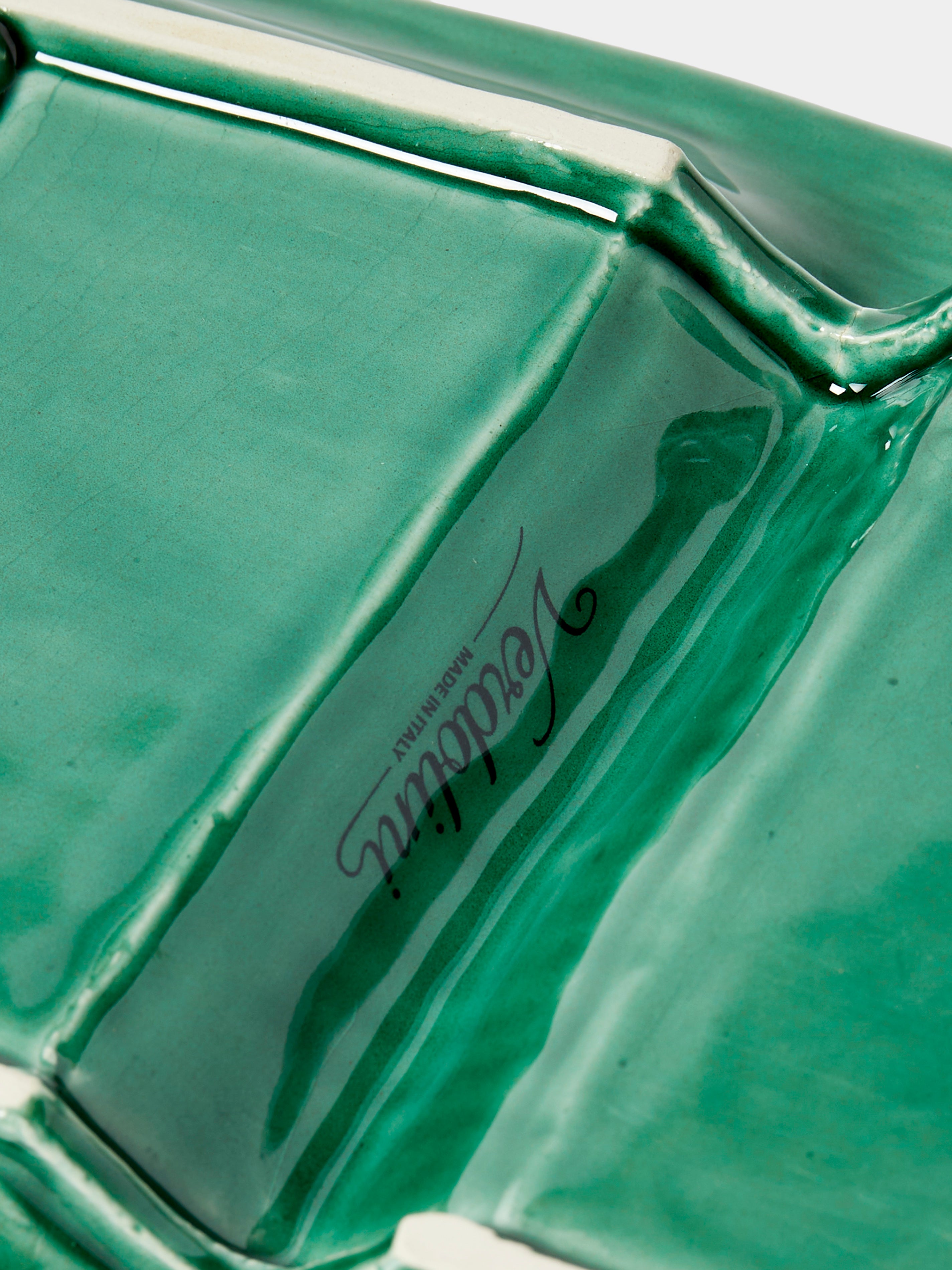 Born in northern Italy in 1964, Verdolini tells its story through ceramics, where earth, glaze and imagination meet. Each piece is shaped and finished by hand, its character revealed through centuries-old techniques and a quiet sense of wonder. Majolica brings to life scenes of foliage and frogs, while Traforato engraving lends lace-like intricacy to borders and edges. A Verdolini specialty lies in reviving archival designs, where historic patterns are reinterpreted with a playful eye and deep respect for the past.