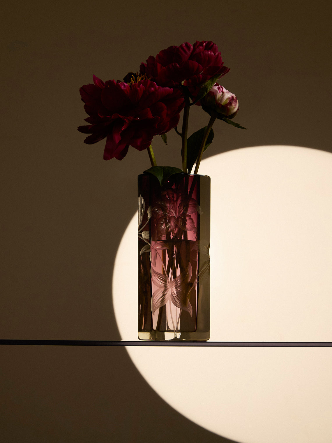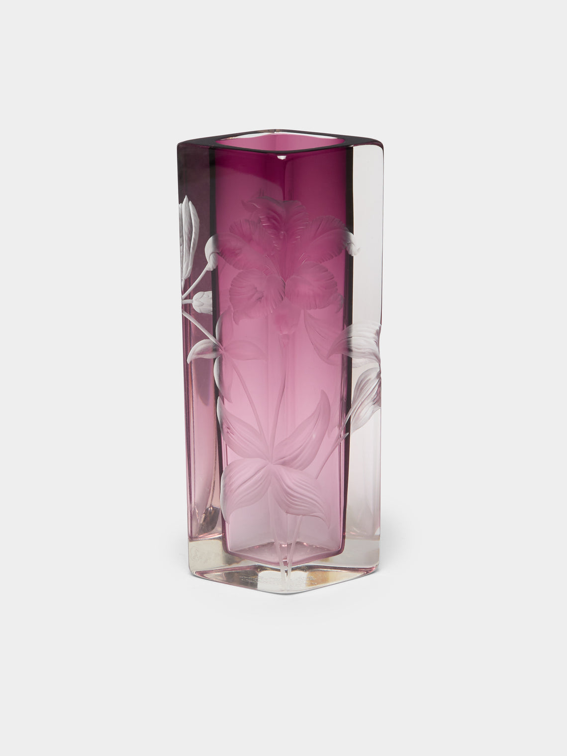 Antique and Vintage 1900s Moser Hand-Engraved Cut Crystal Vase (8in/21cm)