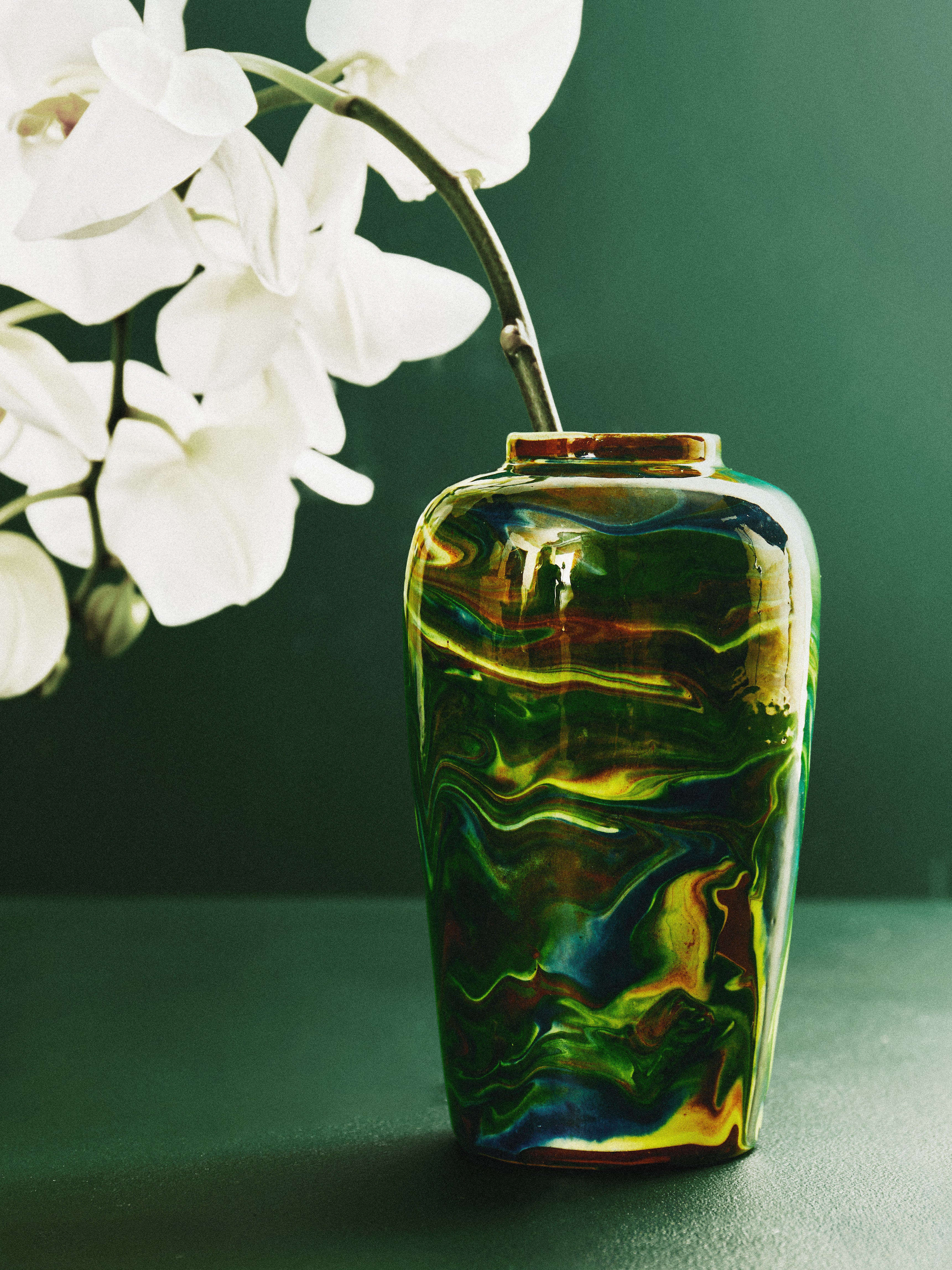 Antique and Vintage Mid-Century Marbled Ceramic Vase (7in/17.5cm)