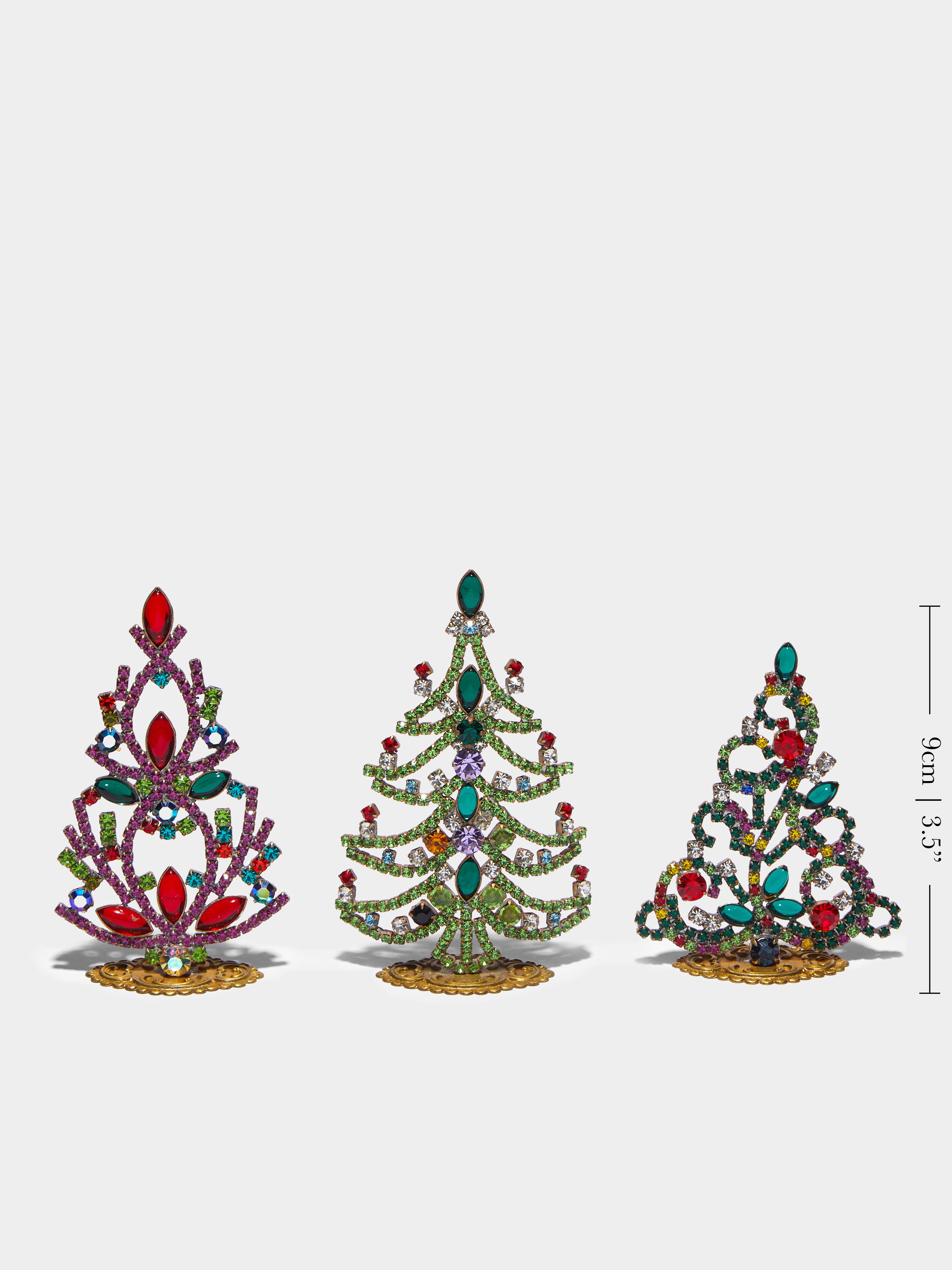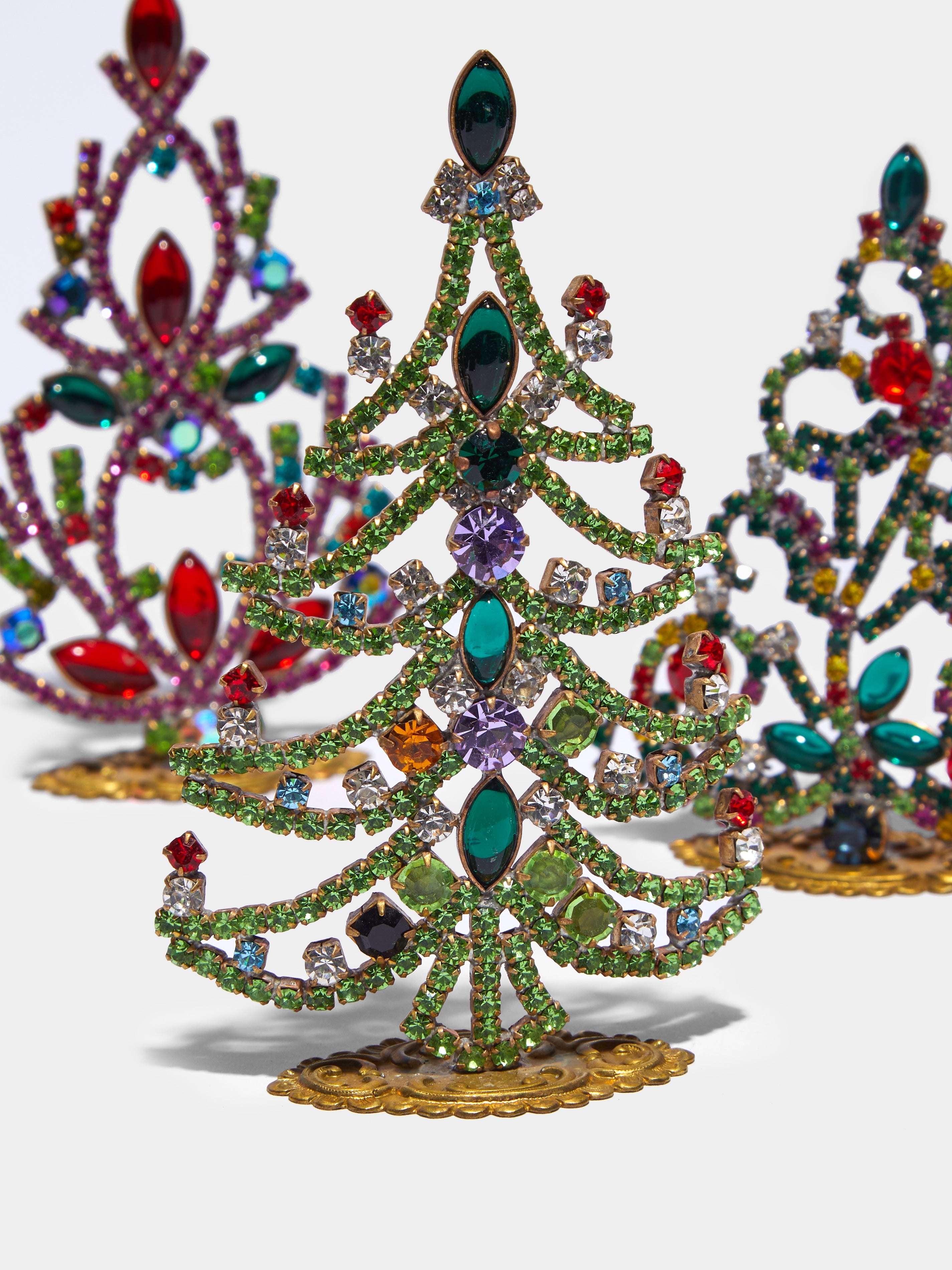 1930s Czech Jeweled Extra Small Christmas Trees (Set of 3)9cm (h) / 4" (h)