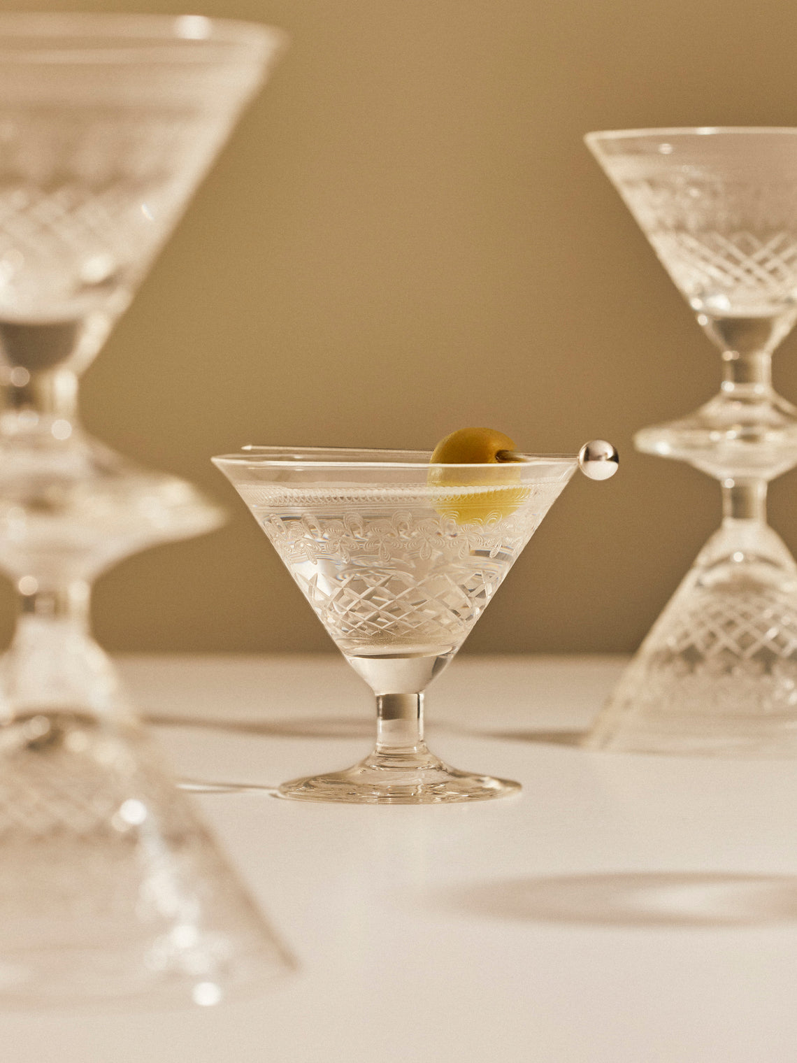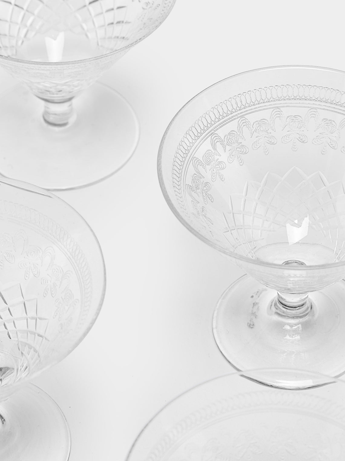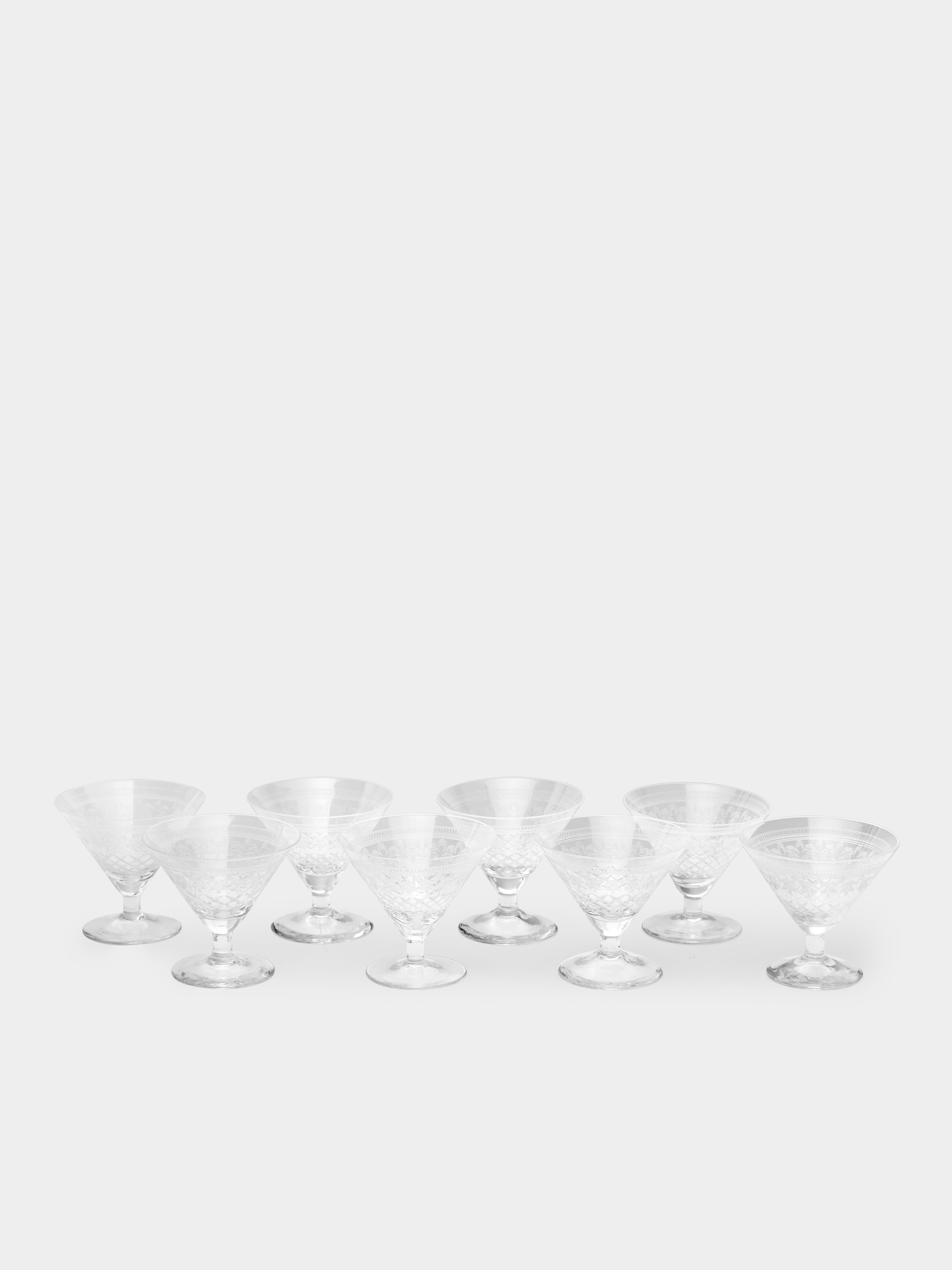 Antique and Vintage 1930s Art Deco Needle-Etched Martini Glasses (Set of 8)