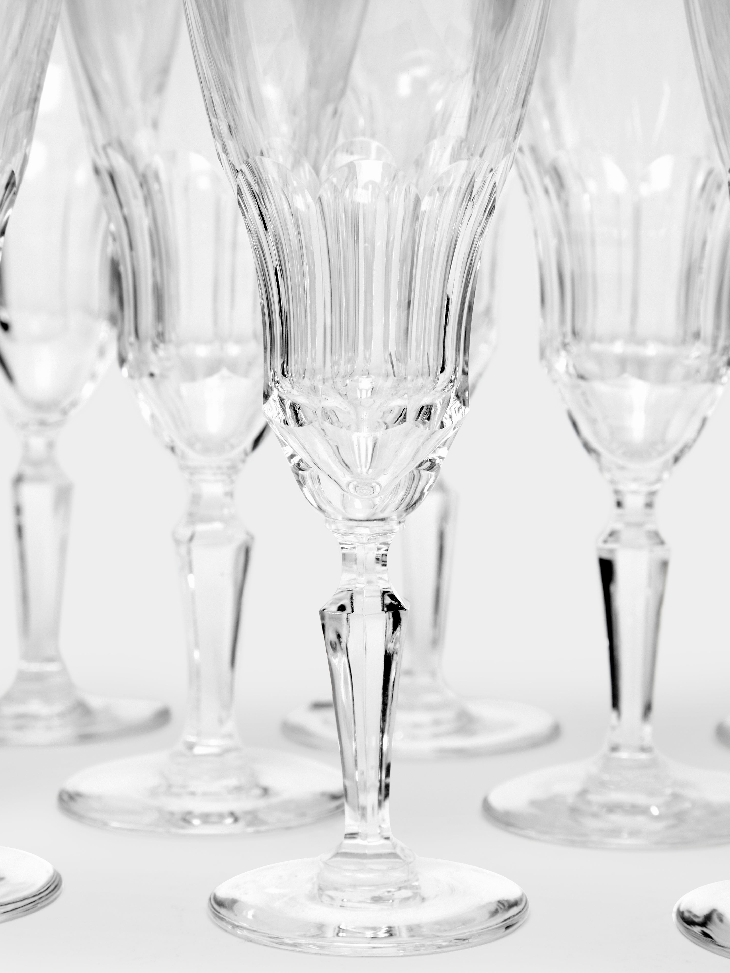 Antique and Vintage 1950s Val Saint Lambert Crystal Champagne Flutes (Set of 12)